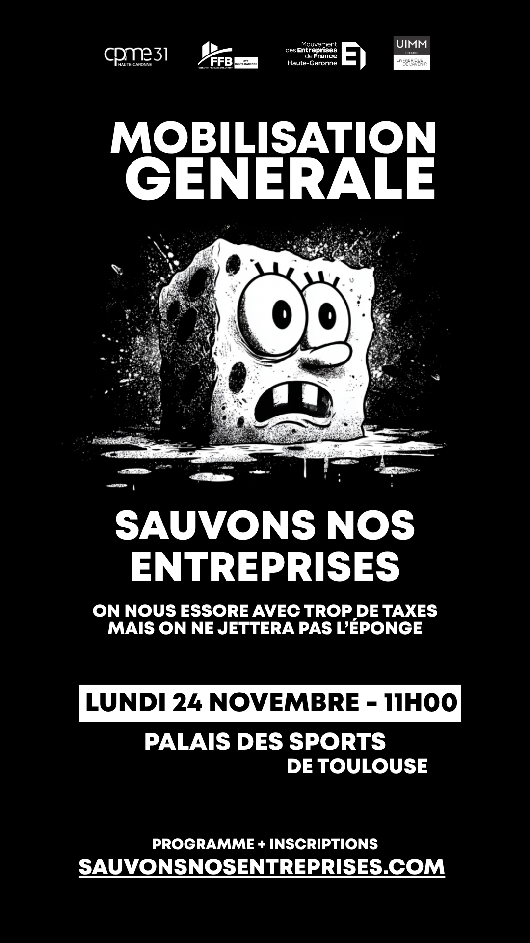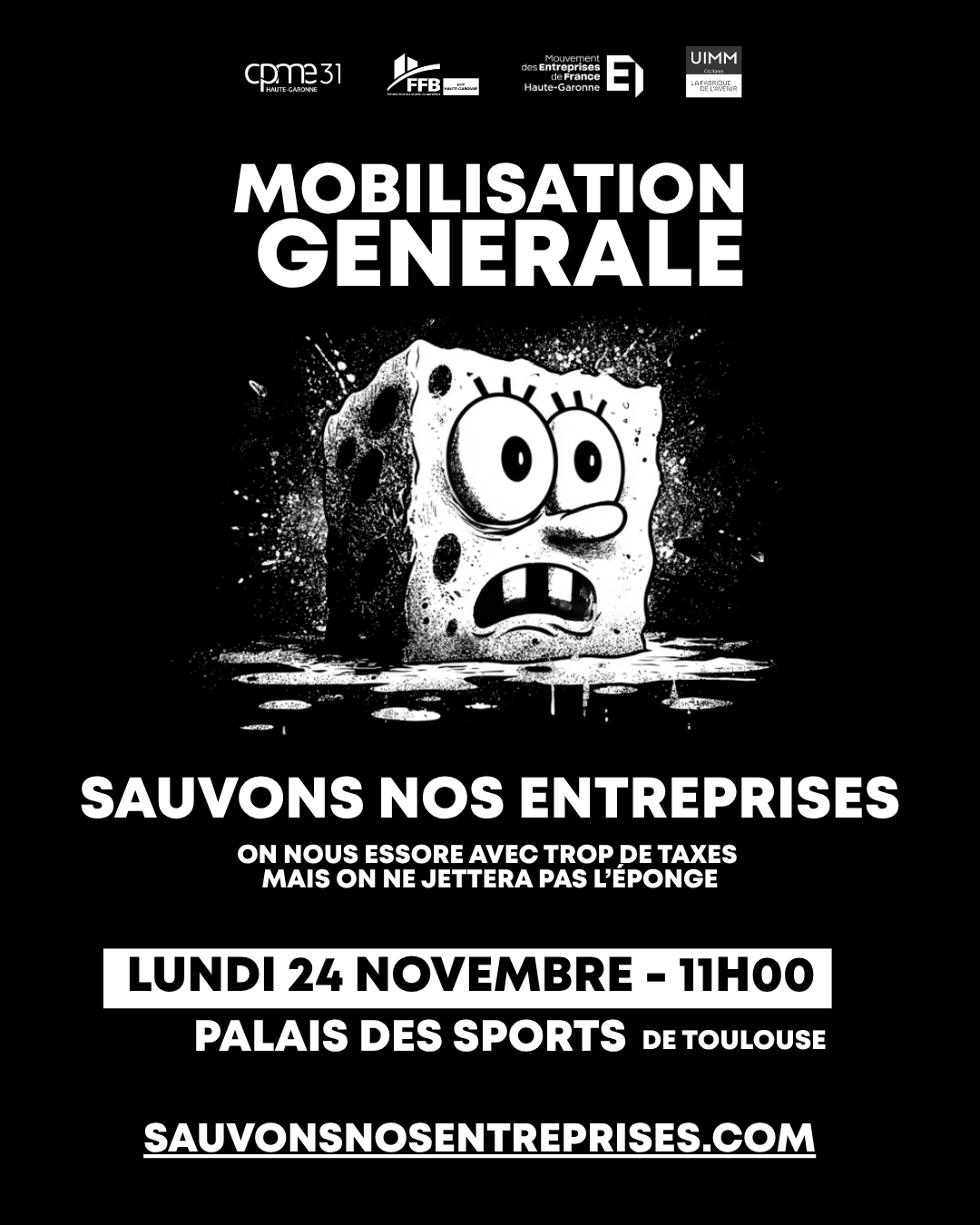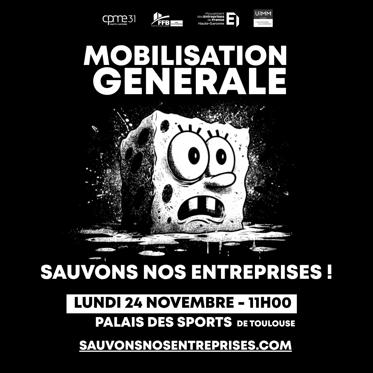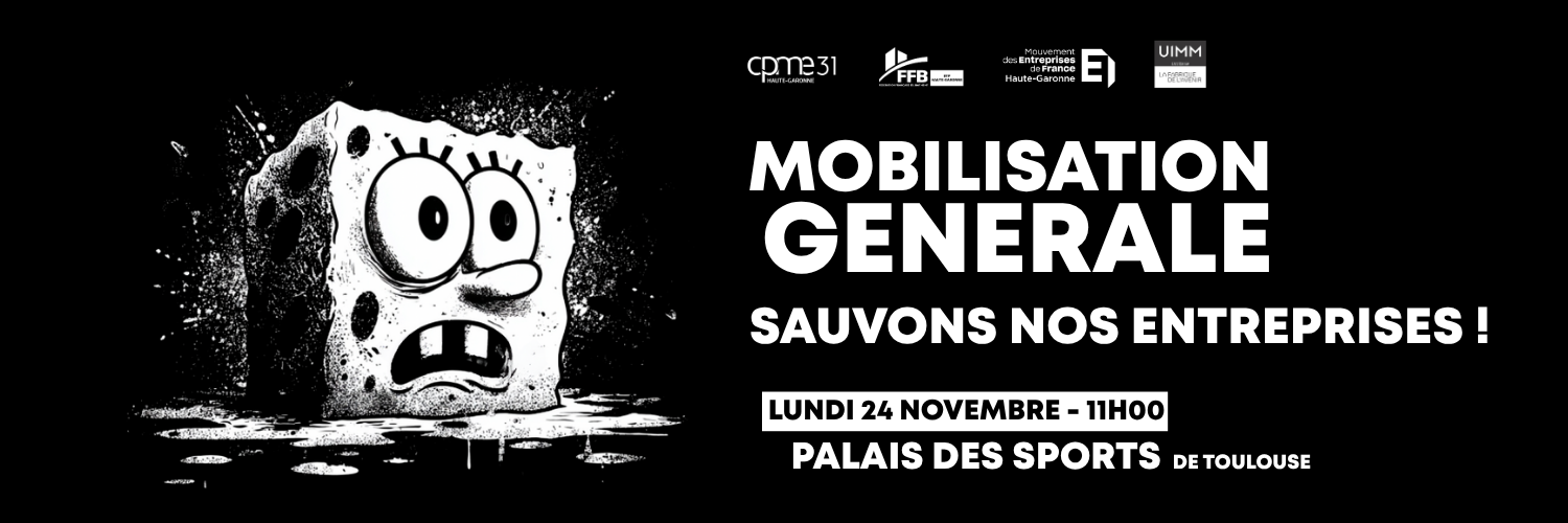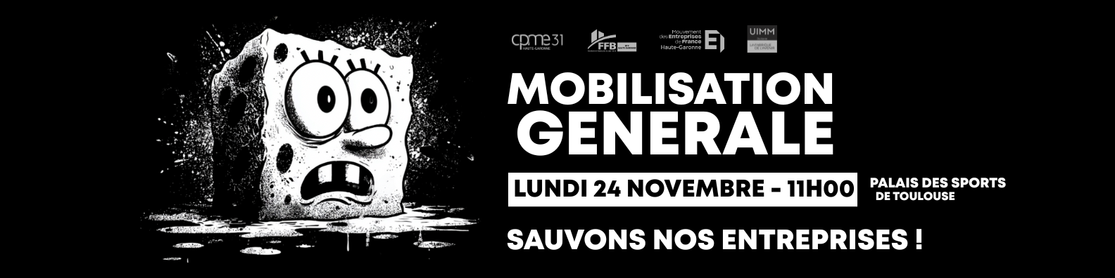 Sur une initiative de la CPME31, les forces économiques de Haute-Garonne qui regroupent la CPME31, le MEDEF 31, la FBTP 31 et l’UIMM Occitanie, lancent un appel à mobilisation le lundi 24 novembre à 11h au palais des Sports de Toulouse
